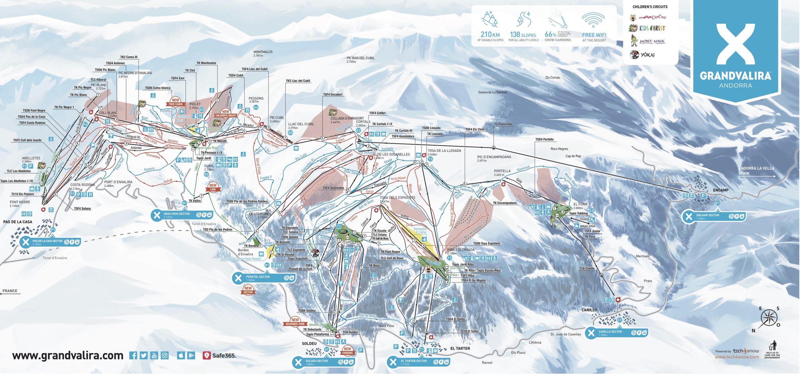 Grandvalira är det största området i Andorra med över 210 km preparerad pist, en fallhöjd på 1000 m samt ett 40-tal resturanger. Tack vare den fina liftkapaciteten är liftköer extremt ovanligt, vilket gör att du får mer tid till att njuta av de 128 nedfarterna.