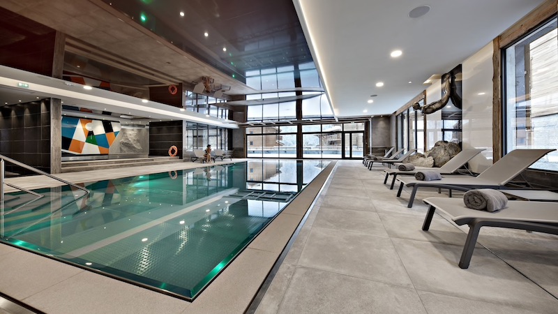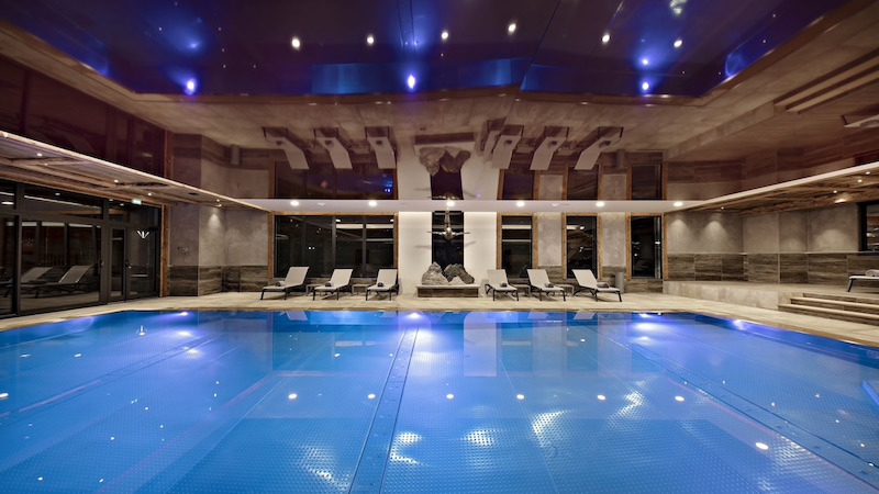 Efter skidåkningen har hotellets gäster fri tillgång till wellnes center med pool, bastu, SPA, gym.