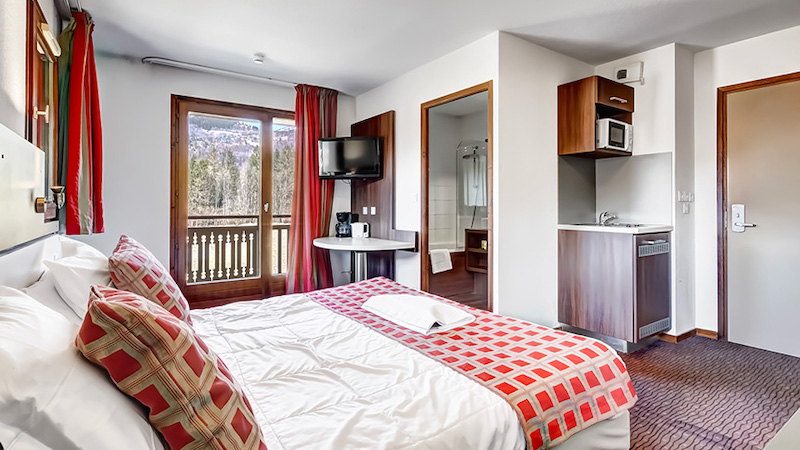 Här har du tillgång till en inomhuspool, alla rum har eget badrum, WiFi, pentry samt satellit- och kabel-tv. Studiorna och lägenheterna har även en balkong med utsikt över de omgivande bergen.