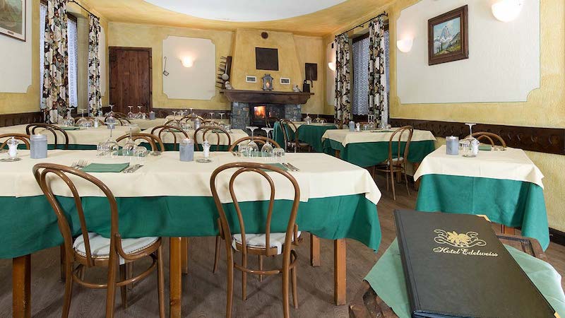 På hotellet finns rymliga lounger, en restaurang med öppen spis och en mysig bar. Rymliga rum på hotellet med kabel-TV och Wi-Fi. Restaurangen serverar traditionella rätter från Aostadalen och läckra hemlagade desserter. Restaurangen har både en fast meny och à la carte-alternativ. Vegetariska och glutenfria alternativ finns tillgängliga till både frukost och middag.