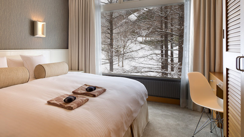 Rumskategorin som Active Ski i första hand erbjuder är dubbelrum Deluxe med separerade bäddar (97x 196 cm) på 23 kvm med utsikt över vulkan-berget Mount Yotei. Är man 3 personer i sällskapet så erbjuds en bäddsoffa (97×182 cm) och är man fler än 3 personer så erbjuds rum med anslutande dörr till intilliggande rum.