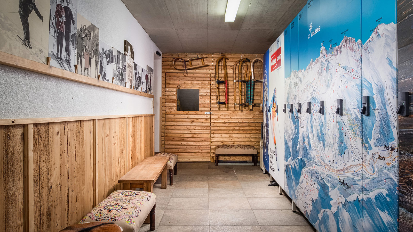 Det finns en liten bar vid den öppna spisen och en mysig lounge med böcker och spel där man kan umgås på kvällarna. Det finns även ett nytt fint skidrum med värmskåp för pläxorna.