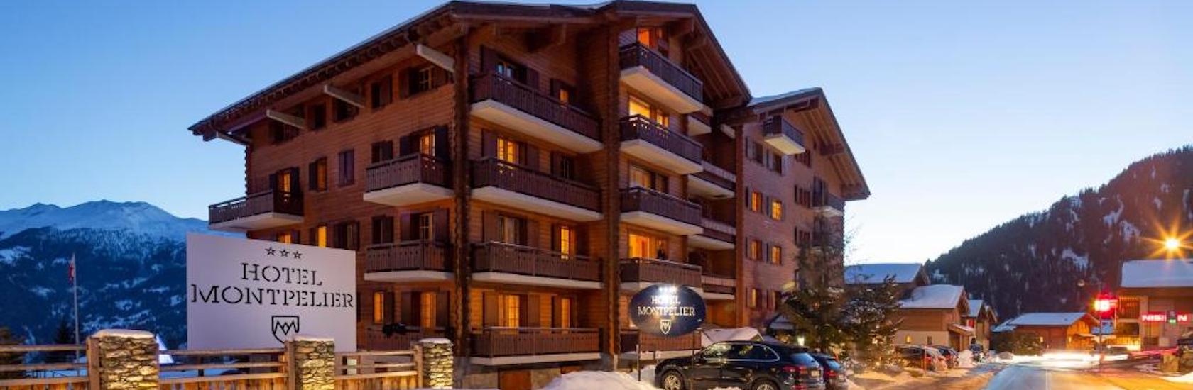 Hotel Montpelier har ett centralt läge i Verbier, endast 900 meter från skidliftarna Medran och Savoleyre.  Hotellet har även ett spa med inomhuspool, bastu och ångbad.