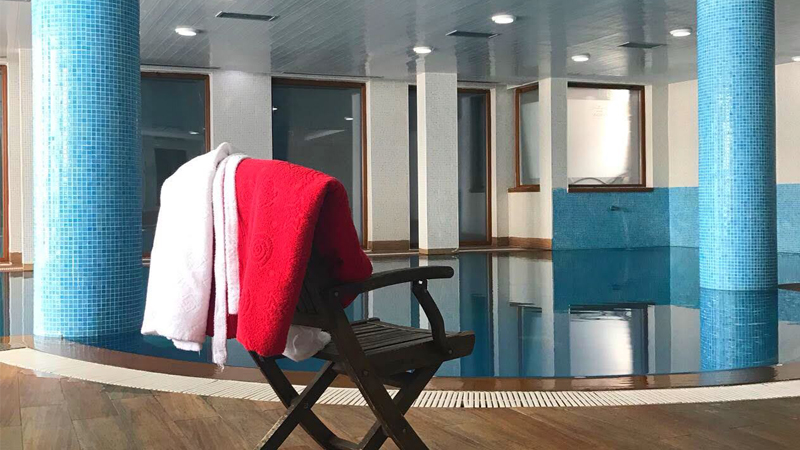 Hotellets hälsocenter erbjuder olika typer av bastu, en bubbelpool och en härlig utsikt.